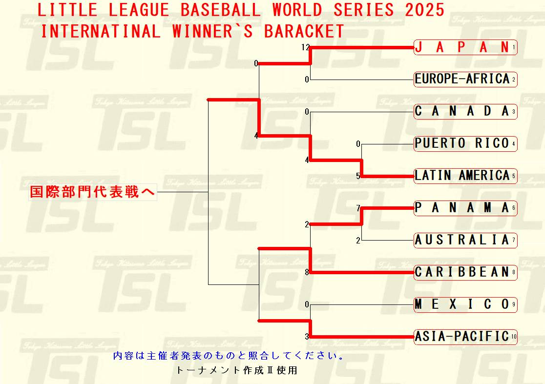 - アジア・パシッフィク選手権大会 リトルリーグ年齢13歳以下のカテゴリーで行われるインターミディエット大会において,全日本選手権大会に優勝した場合,中国、韓国、台湾、香港、マレーシア、ニュージーランド、フィリピン、インドネシア、サイパン、グアム等で構成されるアジア・パシッフィク選手権大会に出場することができます.なお,アジア・パシフィック大会で優勝した場合は,インターミディエット部門の世界大会に出場します。