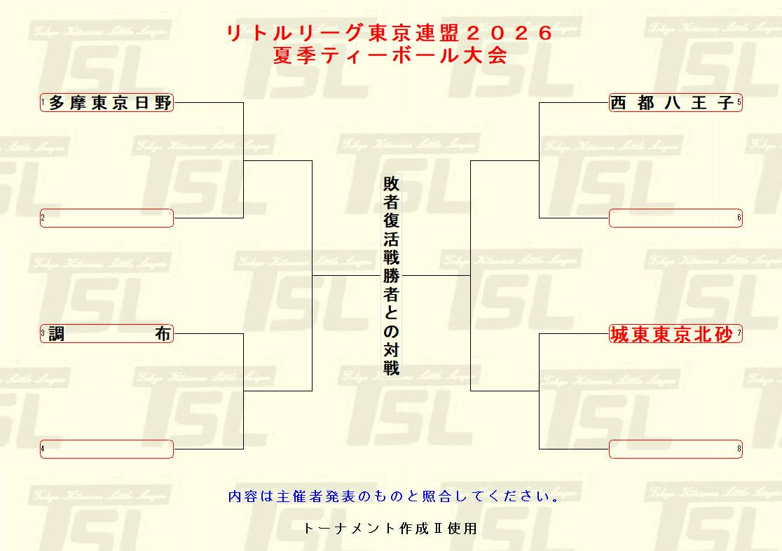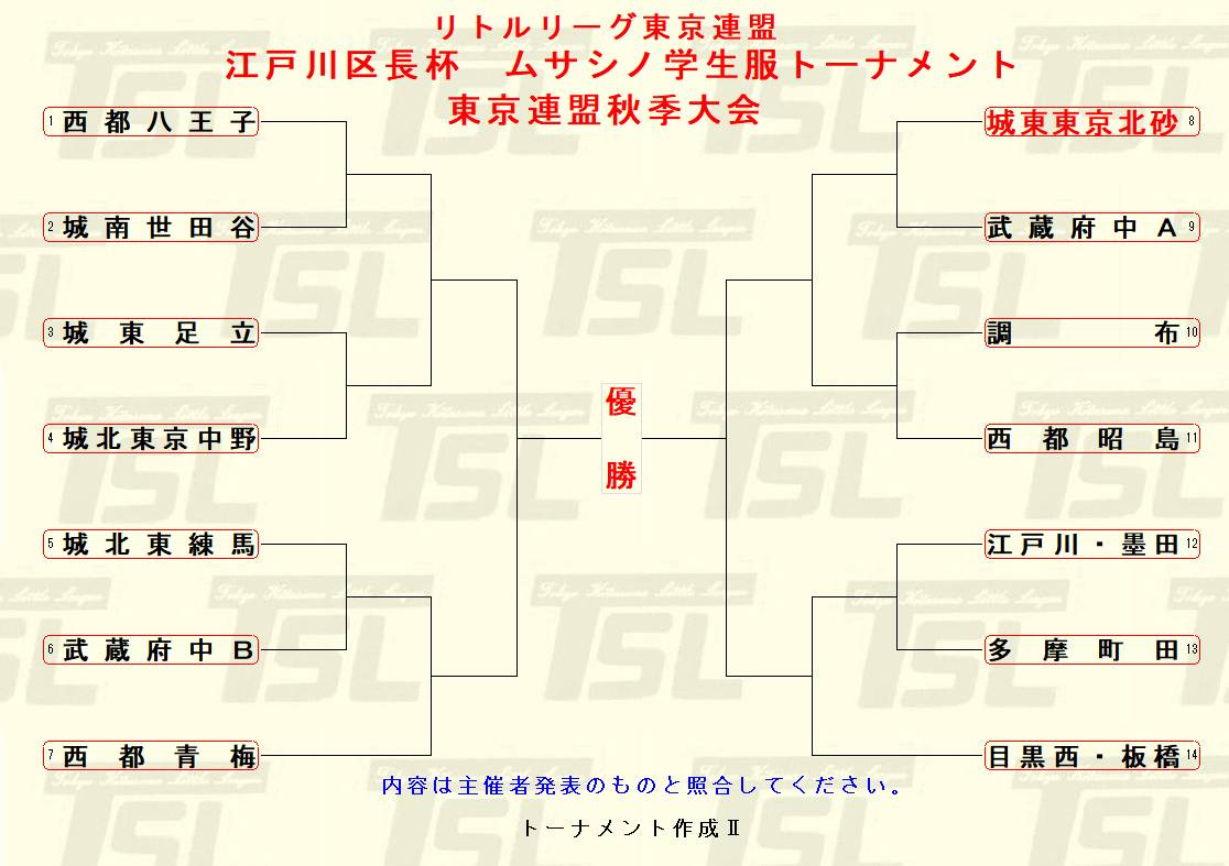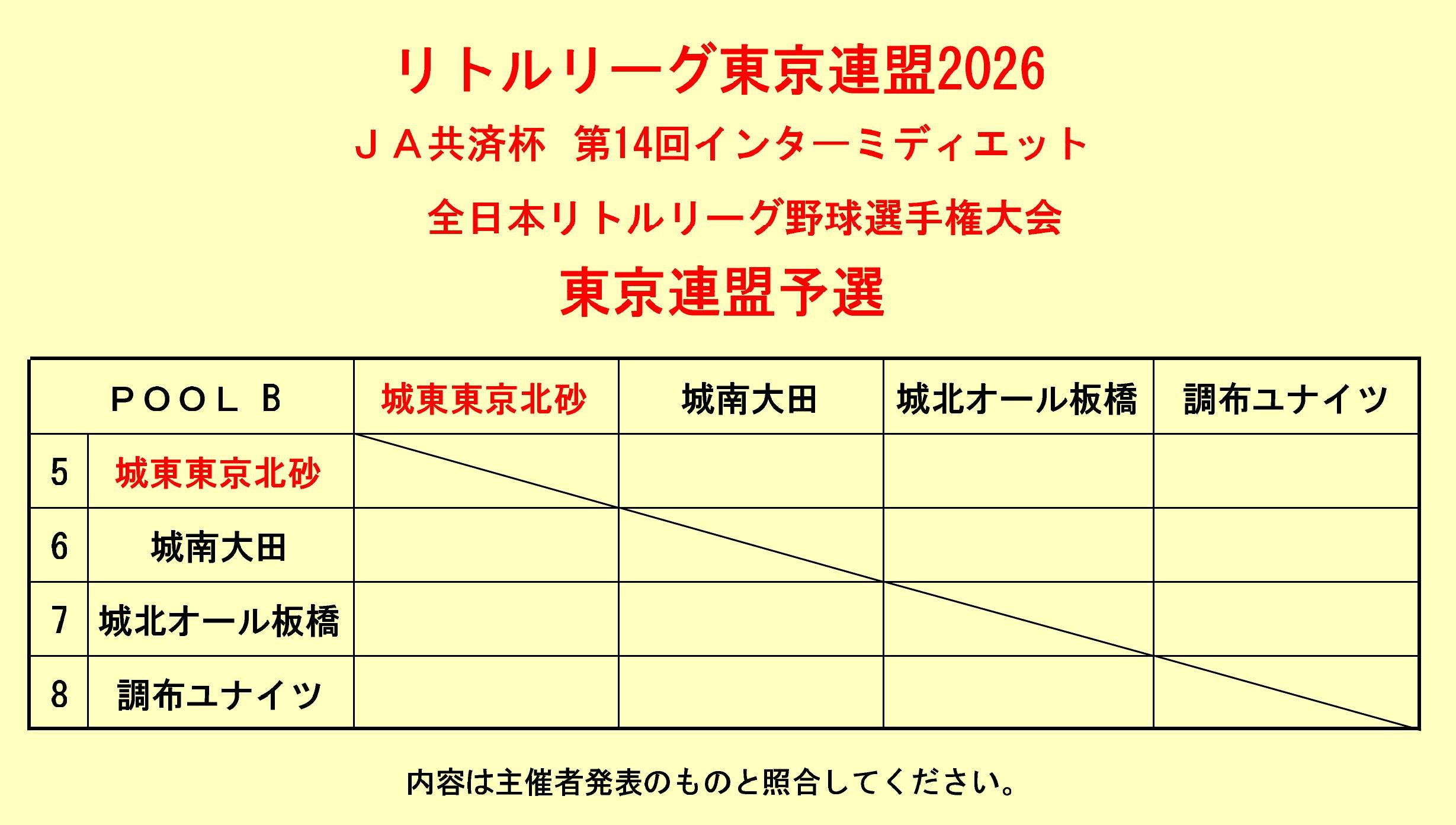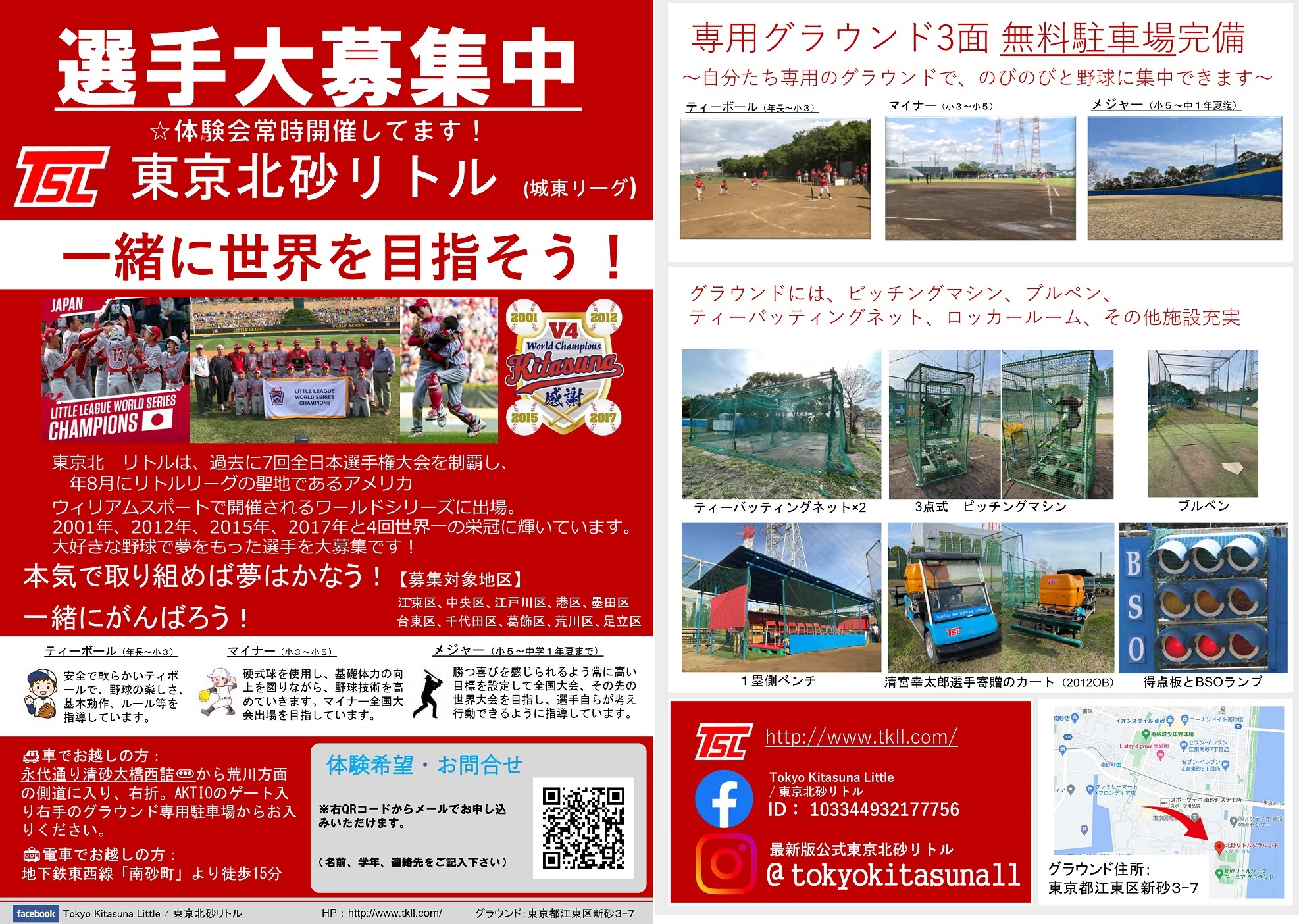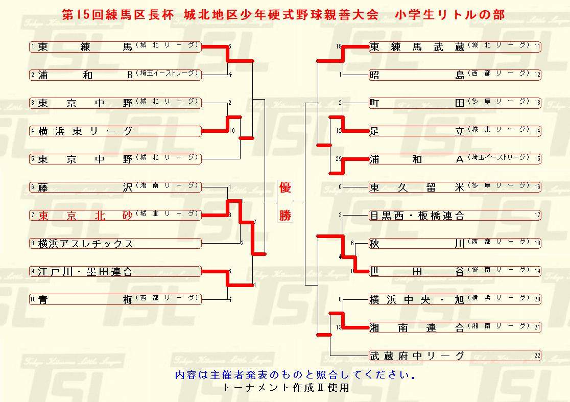 - 東京連盟大会 城東リーグ東京北砂チームはリトルリーグ東京連盟に属しています.東京連盟大会は,春,夏,秋に行われ,優勝,準優勝チームは関東大会,東日本大会,全日本選抜大会に出場します。